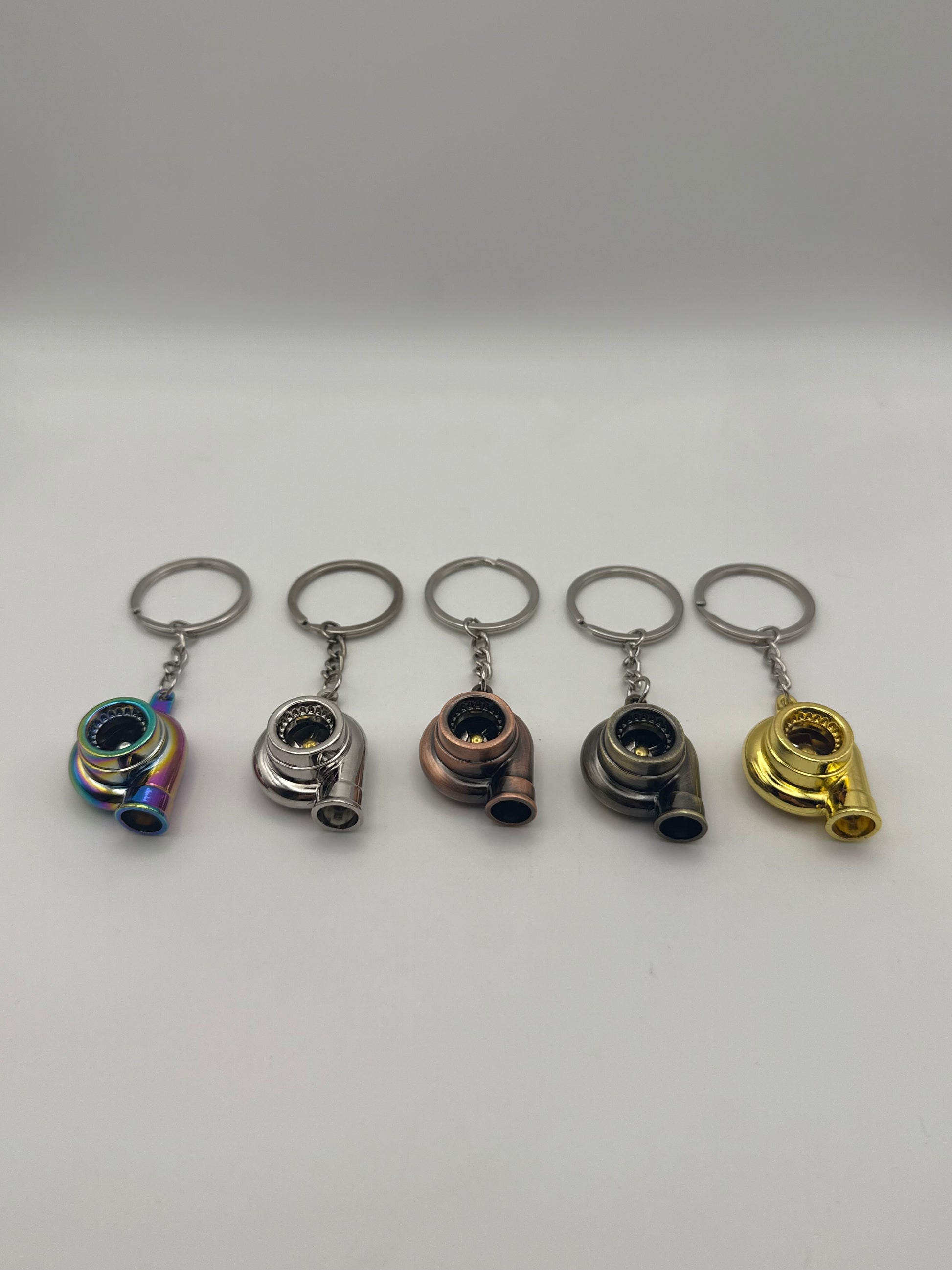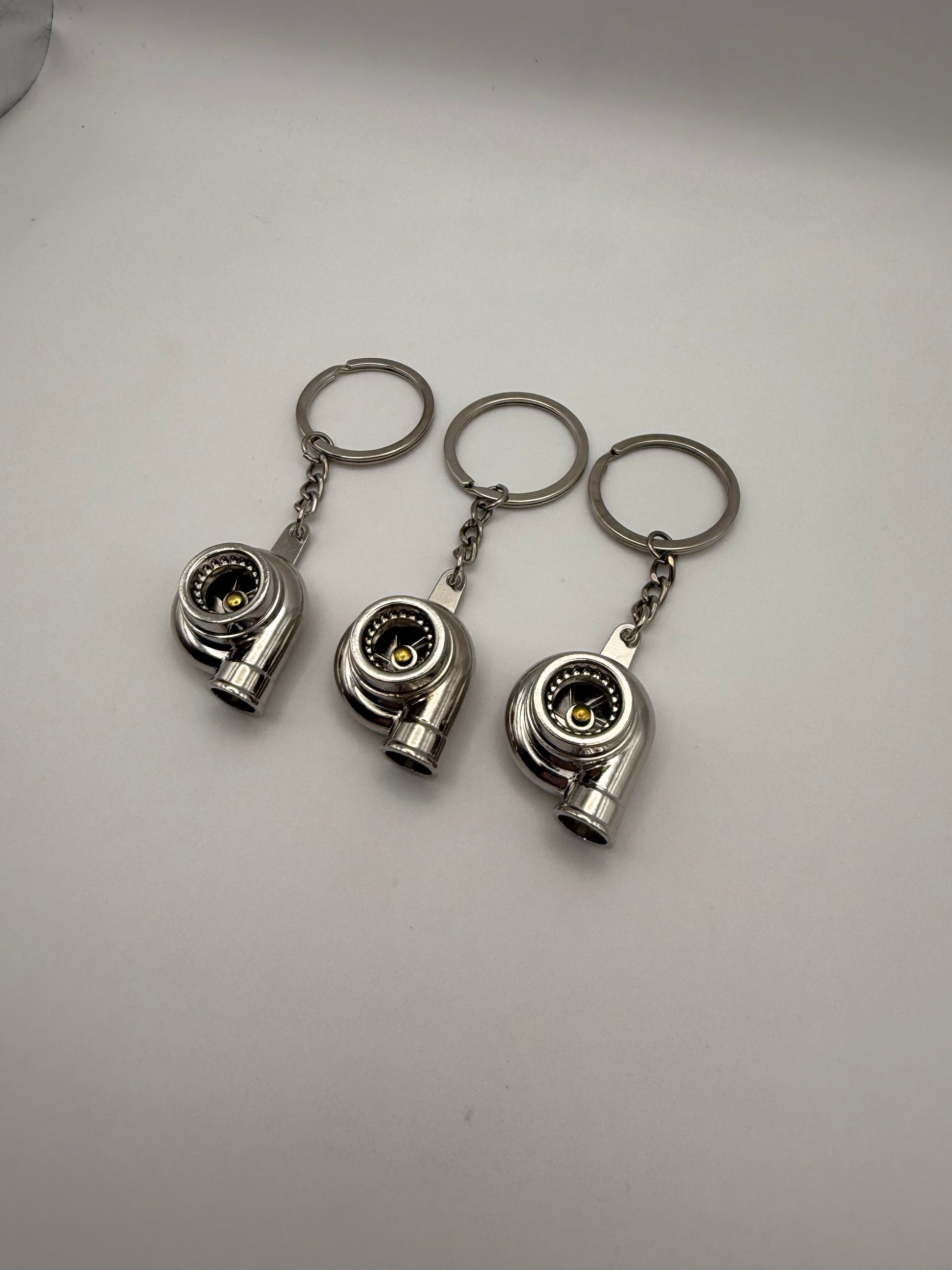 Each keychain features a realistic mini turbo design with a spinning compressor wheel, attached to a sturdy key ring — perfect for keys, backpacks, tool bags, or rearview hangers.